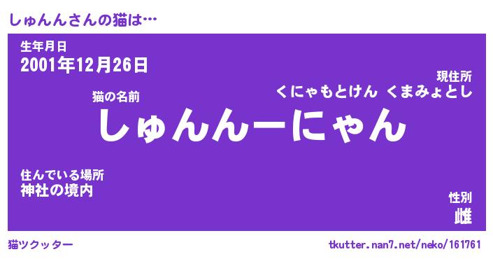 | 意味不明あだ名 | 『ペロリンしゅんん』『永久保存しゅんん』 |