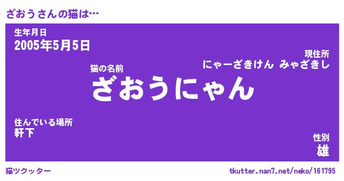| ポケモン風あだ名 | 『ザオチュウ』『ザオウダネ』 |