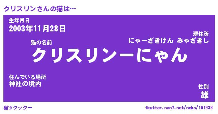 | ファンタジー風あだ名 | 『クリフェル』『エターナルクリスリンー』 |