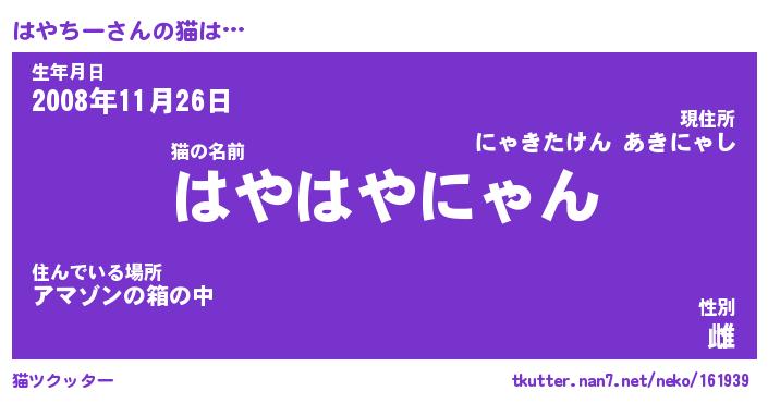 | 意味不明あだ名 | 『ペロリンはやちー』『永久保存はやちー』 |