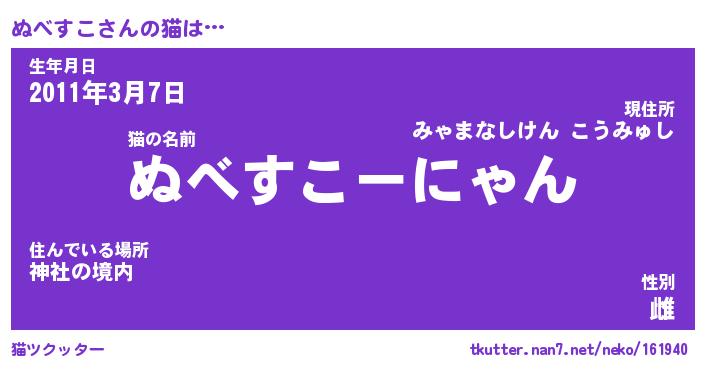 | 自動車の名前っぽいあだ名 | 『ヌベティマ』『ヌスラー』『ヌント』 |