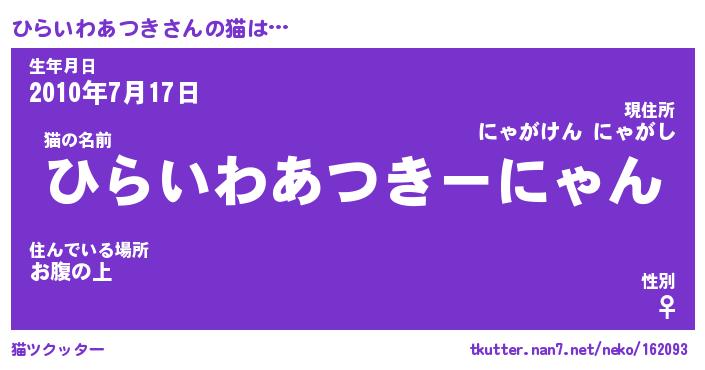 | 生年月日? …「くろねこ」 | 8月01日 10:16 |