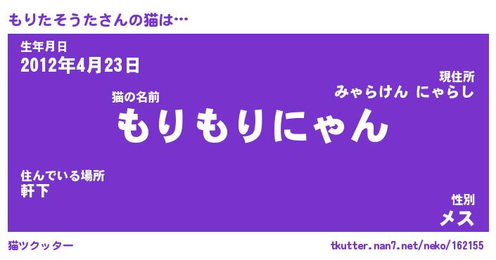 | 2回繰り返すあだ名 | 『もりもり』『ももりり』『ぬらぬら』 |