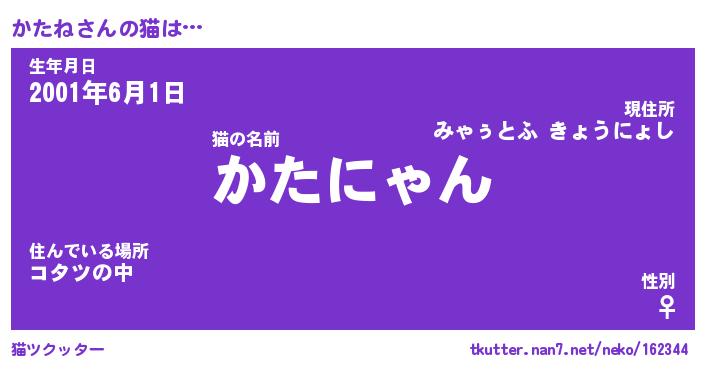 | ファンタジー風あだ名 | 『カタフェル』『エターナルカタネー』 |