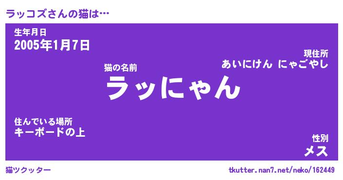 | 生年月日? …「くろねこ」 | 8月01日 10:16 |