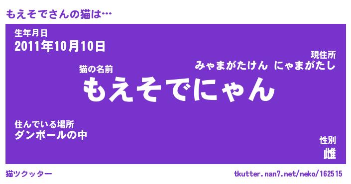 | ポケモン風あだ名 | 『モエチュウ』『モエソダネ』 |