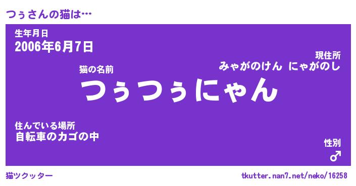 | ポケモン風あだ名 | 『ツゥチュウ』『ツゥダネ』『ヒツゥ』 |