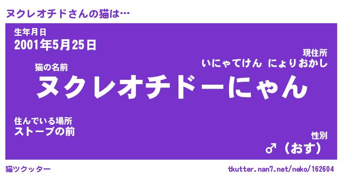 | ポケモン風あだ名 | 『ヌクチュウ』『ヌクレダネ』 |