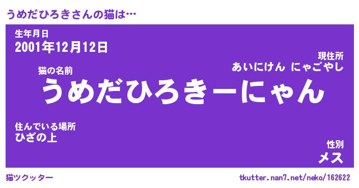 | ポケモン風あだ名 | 『ウメチュウ』『ウメダダネ』 |