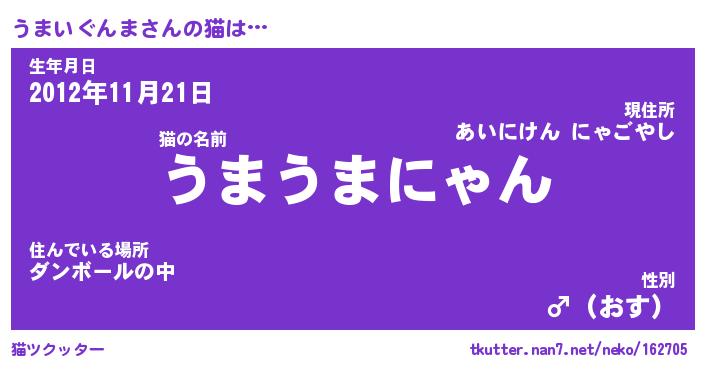 | 2回繰り返すあだ名 | 『うまうま』『ううまま』『ぬるぬる』 |
