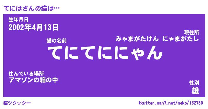| ヘコむあだ名 | 『てにっふぃ~』『牛乳』『てに太郎』 |