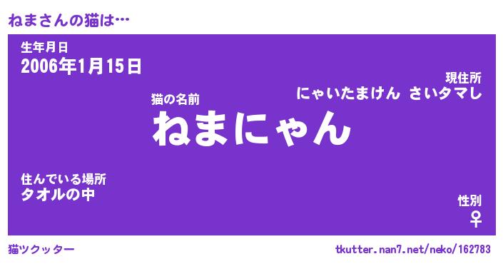 | 2回繰り返すあだ名 | 『ねまねま』『ねねまま』『ぷにぷに』 |