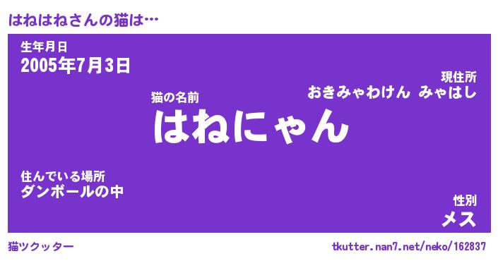 | 生年月日? …「くろねこ」 | 8月01日 10:16 |