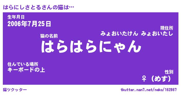 | 生年月日? …「くろねこ」 | 8月01日 10:16 |