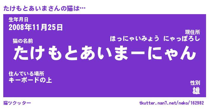 | 2回繰り返すあだ名 | 『たけたけ』『たたけけ』『ぬれぬれ』 |
