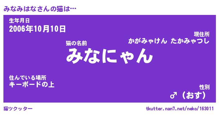 | ファンタジー風あだ名 | 『ミナフェル』『エターナルミナミハナー』 |