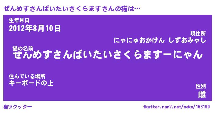 | ツイッター | ぜんめすさんばいたいさくらますさんのツイッターID『fukuyoka_star』 |