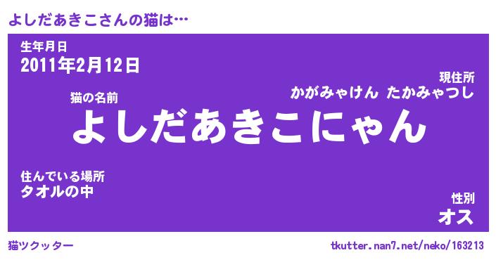 | 肩書あだ名 | 『よしだあきこ御曹司』 |