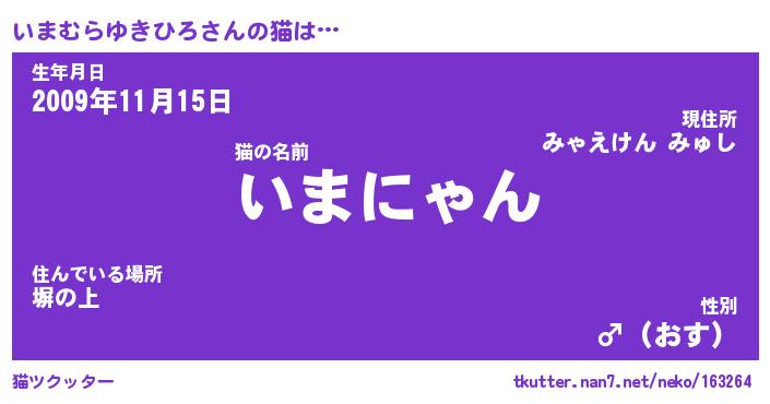 | ポケモン風あだ名 | 『イマチュウ』『イマムダネ』 |