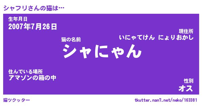 | 意味不明あだ名 | 『ペロリンシャフリ』『永久保存シャフリ』 |