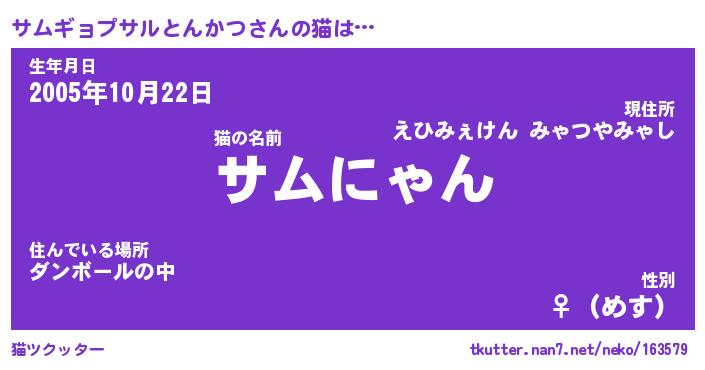 | ポケモン風あだ名 | 『サムチュウ』『サムギダネ』 |