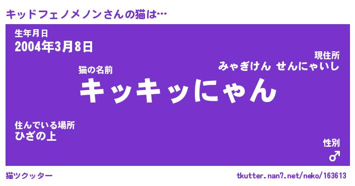 | ツイッター | キッドフェノメノンさんのツイッターID『katatsumuri_idle』 |