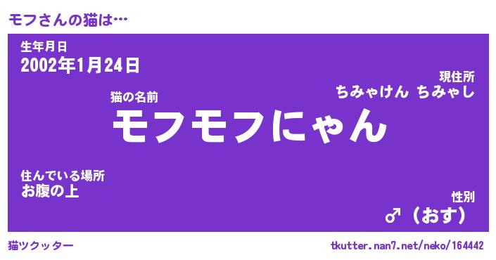 | ポケモン風あだ名 | 『モフチュウ』『モフダネ』『ヒモフ』 |