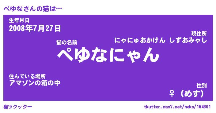 | ポケモン風あだ名 | 『ペユチュウ』『ペユナダネ』 |