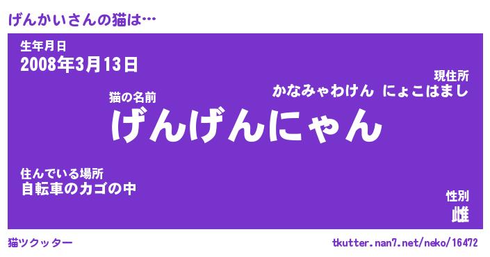 | ポケモン風あだ名 | 『ゲンチュウ』『ゲンカダネ』 |