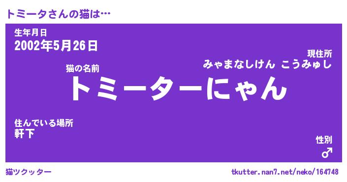| 意味不明あだ名 | 『ペロリントミータ』『永久保存トミータ』 |