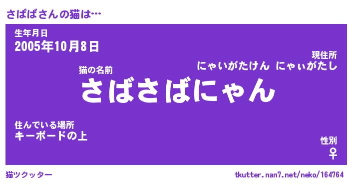 | 意味不明あだ名 | 『ペロリンさばば』『さばばフォーエバー』 |