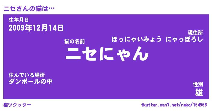 | 2回繰り返すあだ名 | 『ニセニセ』『ニニセセ』『かーかー』 |