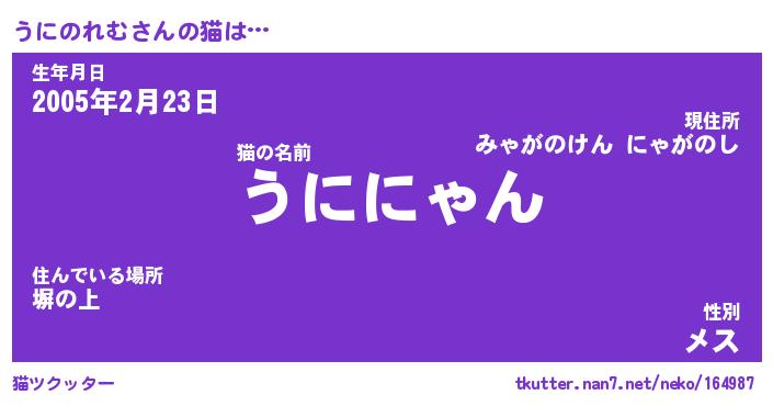 | 2回繰り返すあだ名 | 『うにうに』『ううにに』『ぬらぬら』 |
