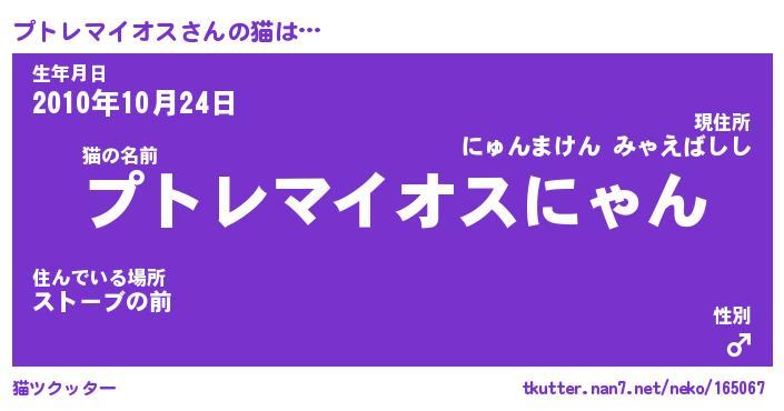| ファンタジー風あだ名 | 『プトフェル』『ファントムプトス』 |