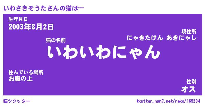 | 生年月日? …「くろねこ」 | 8月01日 10:16 |