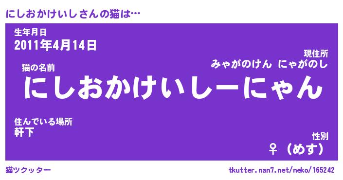 | 肩書あだ名 | 『にしおかけいし御曹司』 |