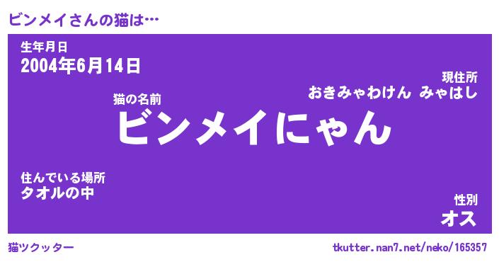 | ファンタジー風あだ名 | 『ビンフェル』『エターナルビンメイー』 |