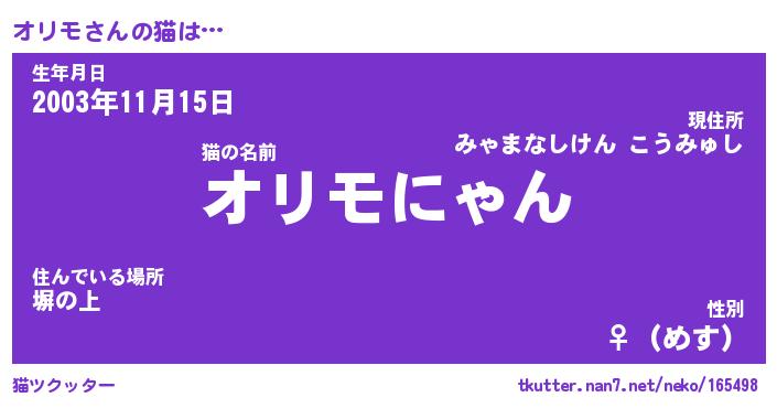 | ポケモン風あだ名 | 『オリチュウ』『オリモダネ』 |