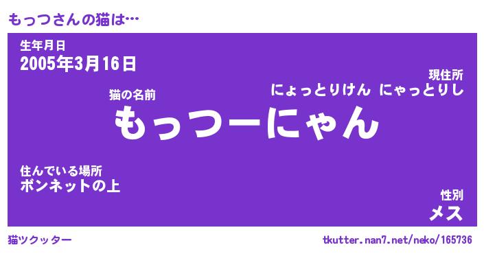 | ポケモン風あだ名 | 『モッチュウ』『モッツダネ』 |