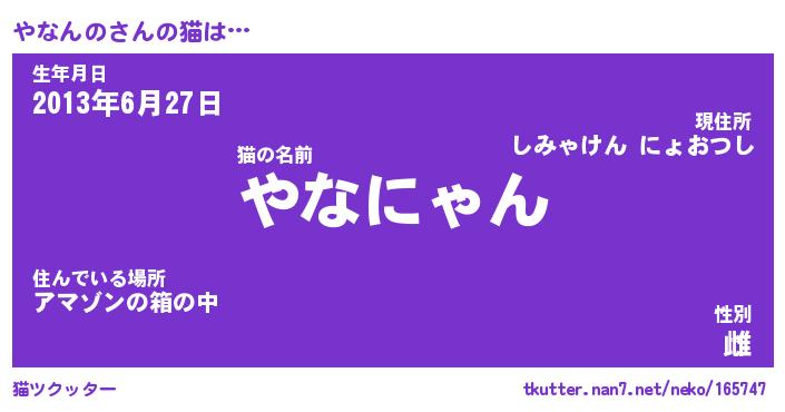 | ファンタジー風あだ名 | 『ヤナフェル』『エターナルヤナンノー』 |
