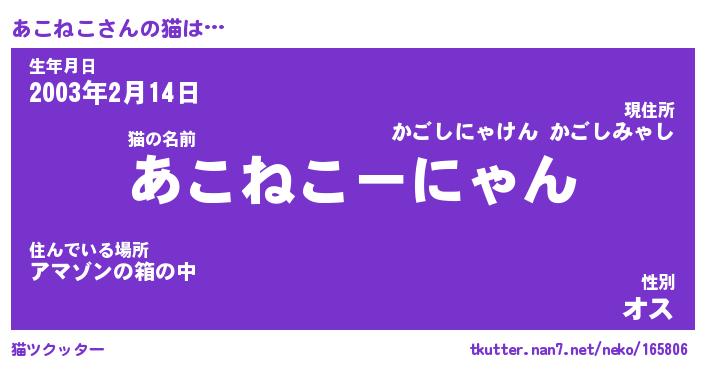 | 欧米人風あだ名 | 『マイケルあこねこ』『ウサインあこねこ』 |