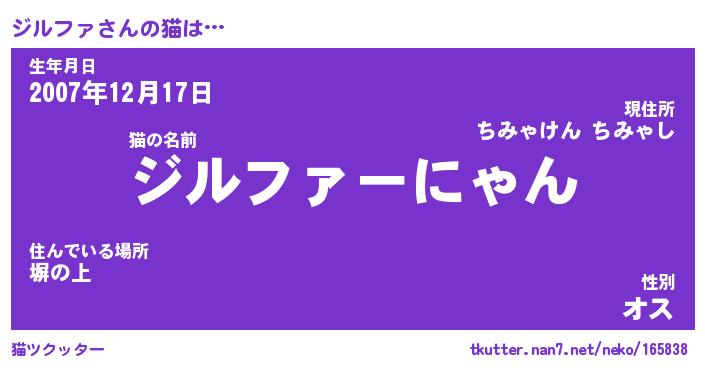 | ファンタジー風あだ名 | 『ジルフェル』『エターナルジルファー』 |