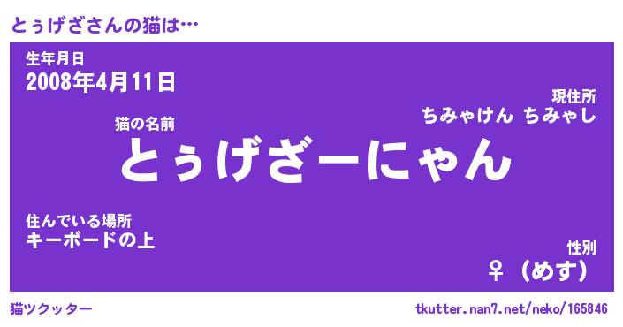 | ポケモン風あだ名 | 『トゥチュウ』『トゥゲダネ』 |