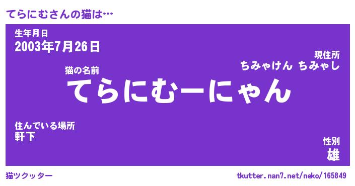 | 意味不明あだ名 | 『ペロリンてらにむ』『永久保存てらにむ』 |