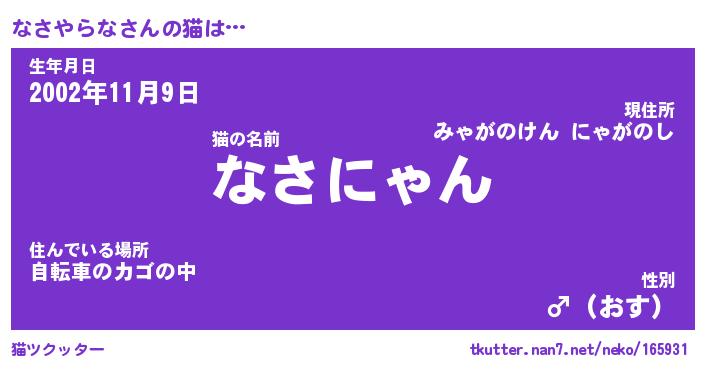 | ヘコむあだ名 | 『なさにー』『つくし』『なさお』 |