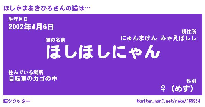 | ヘコむあだ名 | 『ほしにゅー』『牛乳』『ほしっ子』 |