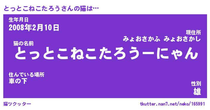 | ツイッター | とっとこねこたろうさんのツイッターID『namakemono_nyan』 |