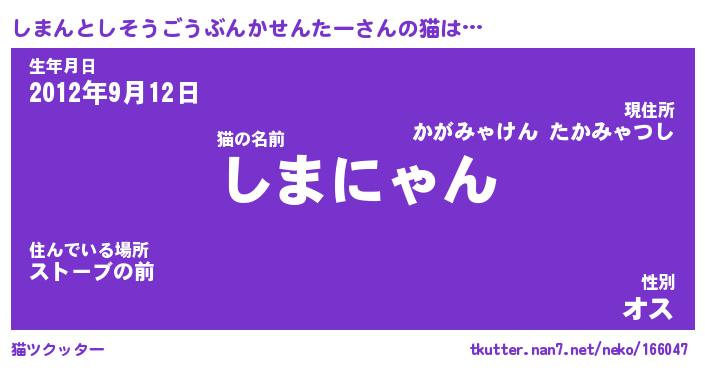 | ヘコむあだ名 | 『しまにゅー』『豆乳』『しまっぺ』 |