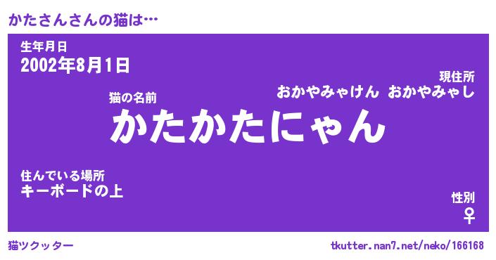 | ファンタジー風あだ名 | 『カタフェル』『エターナルカタサンー』 |