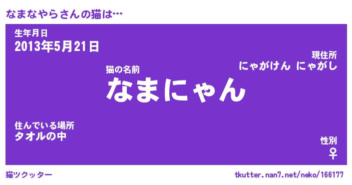 | ファンタジー風あだ名 | 『ナマフェル』『エターナルナマナヤラー』 |